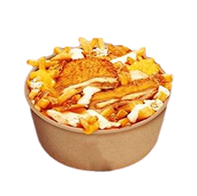 1 Viande au choix.Garni de frites et sauce fromage maison.