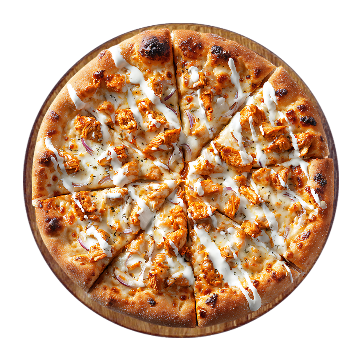 Crème fraîche, mozzarella, viande hachée, poulet, champignons, cheddar.